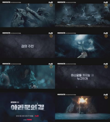 预告中,张东健、李准基(饰演 银歼/萨雅)、申世京(饰演 坦雅)、金玉彬(饰演 太遏何)四位主角的身影闪现在刀刃上,某人拔剑高高举起对著雷鸣闪电接过能量,又重重落下插在老树中央,散发出神奇光芒,谁能够成为阿拉姆恩之剑的主人呢?