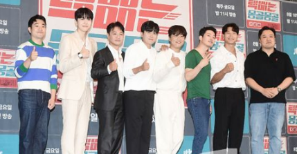 全新综艺《快递在蒙古》发布会张赫著低胸T-shirt登场,金钟国还秀肌肉