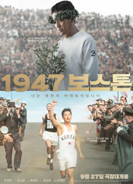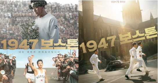 海报上方在日治强占期,创下2小时29分19秒的新世界纪录而获得金牌,甚至还用手中捧著的花盆树叶遮住了胸前的日本国旗,宋基政即使获得金牌却露出沉重表情,对比下方饰光复之后首度参加竞赛,胸前印有太极旗跑在全世界记者及观众面前的徐润福,海报上印著我是大韩民国的马拉松选手,展现出爱国以及对马拉松的热情,以及背后不为人知的辛苦故事。