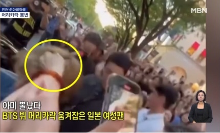 防弹少年团(BTS)成员V在日本东京被一名极端粉丝抓住头发