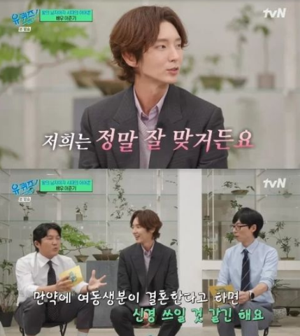 听完李准基和妹妹的故事,刘在锡忍不住感叹兄妹俩的感情,李准基又称:同住真的很不错,她也说因为我她很累,要做饭啊之类 的,让我好好专注工作就好。当听到主持人说「妹妹如果要结婚的话,你应该会很在意吧时,李准基即刻回应:我会生气,如果不是正直可靠的人的话,哪怕我暂时不工作也要把好好把她纠正过来,她对我来说真的非常重要。