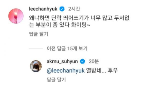 韩网讯/ 乐童音乐家(AKMU)打破2年空白期於8月21日发行单曲专辑《Love Lee》,临近宣传活动尾声时,妹妹秀贤通过个人IG发表长文感慨、令人心酸动容,没想到哥哥灿赫一回覆,画风瞬间变了。