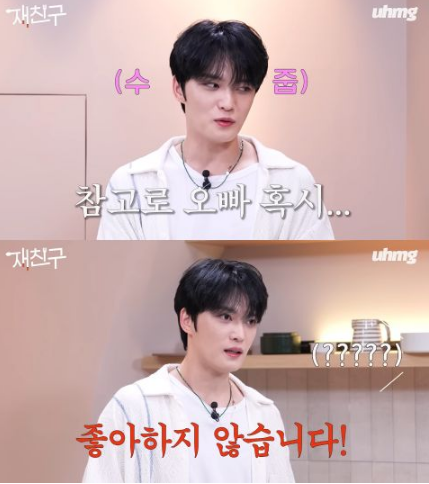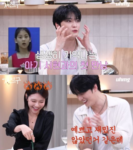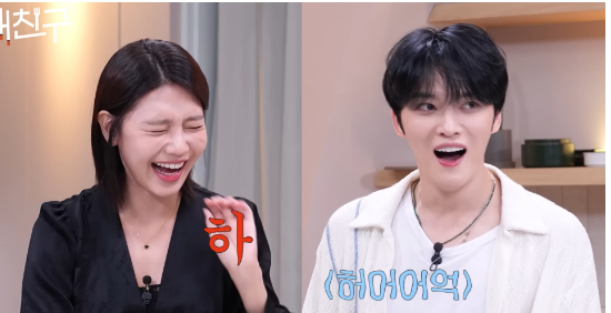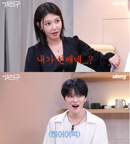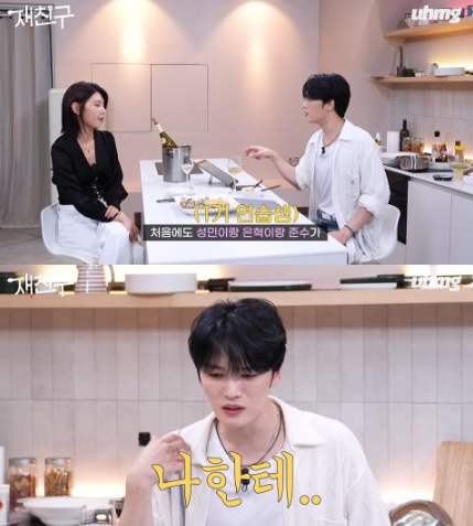 秀英登场后,与在中聊了更多练习生趣事,一开头又是一阵爆笑。秀英问:欧巴你是几年进公司的?在中:2001年?秀英:……那我是前辈吗?秀英眼球转动了一下后抬头看在中,在中张大嘴说:我都感受到杀气了!