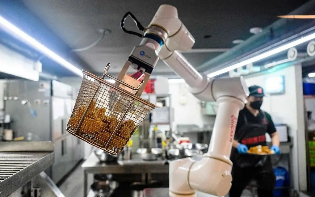 报道称,这家名为“机器人炸鸡”的炸鸡店在韩国各地大受欢迎,1个机器人用一口锅能在2小时内炸出100只鸡,而以前完成这样的工作量需要5个人。机器人不仅炸鸡炸得多,还炸得更好吃。它能有效控制油炸时长、调料用量,以保证每只炸鸡的口味基本一致。