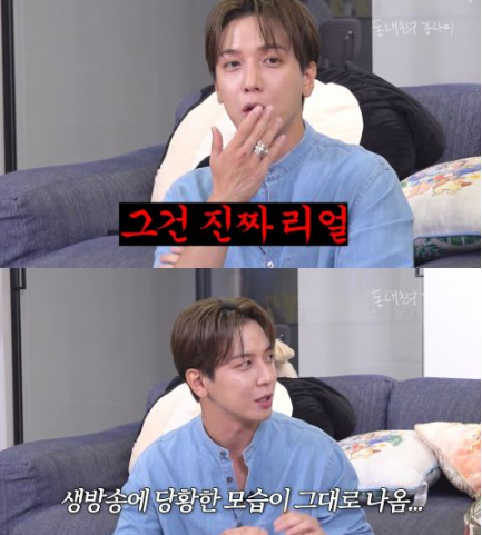郑容和提到了《我们结婚了》,讲起著名戒指事件滔滔不绝,强调「是真的」。他解释自己在《我结》期间都戴著戒指,即便洗澡也是,又因为戒指是便宜货会生绣,所以才会在音放打歌的时候突然断裂,而他慌张找戒指的画面还因直播放送出去。
