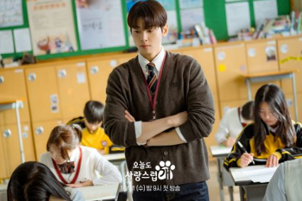 之后,韩海娜(朴圭瑛 饰)提到:但是不觉得陈老师有点奇怪吗?对躲避自己产生疑问,还看到在办公室被狗吓了一跳的陈书元,察觉到他害怕狗。害怕狗的陈书元和陷入变成变成小狗诅咒的韩海娜,很期待两人之间有趣的关系呢!另外,李宝谦(李玹雨 饰)在学校也是人气老师,特别照顾身旁的人,是亲切的气氛制造者,韩海娜还说:我真的是因为宝谦才来上班的。是说……这所学校老师的颜值都太高了吧~~