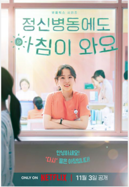 韩网讯/ Netflix 预计在11月推出的全新韩剧《精神病房也会迎来清晨》的首波前导预告公开,由朴宝英、延玗臻、张东润、李姃垠主演,《僵尸校园》李在奎导演合作《耀眼》、《摸心第六感》的编剧李南奎,阵容十分坚强。