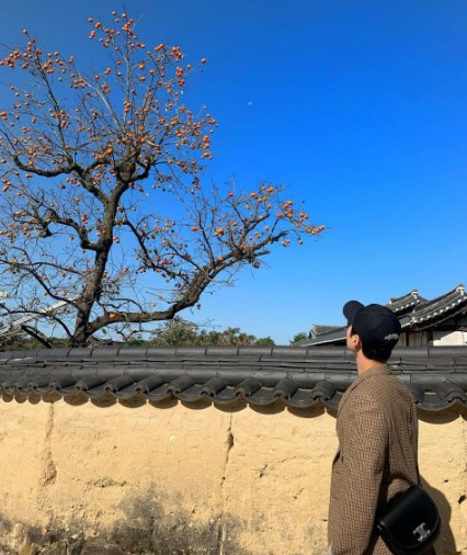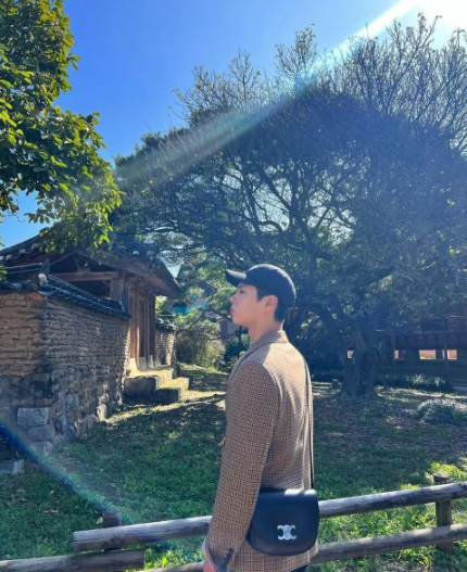 朴宝剑身穿著CELINE HOMME的知名品牌服饰,配文写著:某天回忆起都能说出”那时我们渡过了一段美好时光”的旅行。
