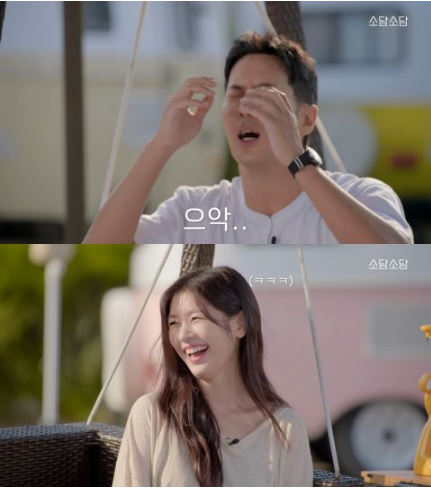 时隔一年多,这两名演员兼YouTuber终於再次合作,庭沼玟YouTubessomday新企划沼谈沼谈第二集访谈邀请到金知硕,李相二还是金知硕?我真的很伤心……金知硕开场没多久就抱怨为什么自己不是第一个嘉宾,也委屈的说为什么是大白天拍摄而非晚上,天气让他热得受不了,而且来到现场只有一杯迎宾饮料没有烤肉。回顾李相二那集就会知道,李相二是在灯光美气氛佳的晚上拍摄,而且两人可是真的在露营地露营烤肉吃啊。