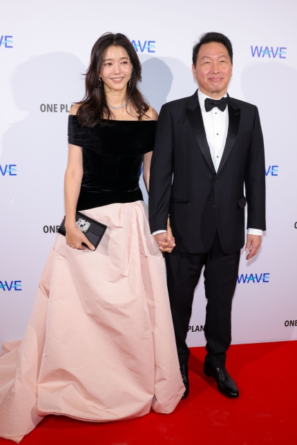 讯/ 大韩商工会议所会长崔泰源(SK集团会长)与同居者T&C财团理事长金熙英(音)联手首次公开露面。在法国巴黎Gala Dinner活动现场,两人在照片墙上并排站着,手牵手,灿烂地笑着站在镜头前。