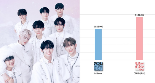 ZERObaseONE上周发行《MELTING POINT》,首日就卖出145万,突破了上张专辑首日成绩,累计至12日,初动量七日共销售213万,成绩进步亦相当惊人。