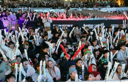 当天的街头助威战聚集了以家庭为单位的粉丝、外国游客、角色扮演的游戏迷等。 因为没能买到高尺巨蛋的票,所以聚在了光化门助 威战上。