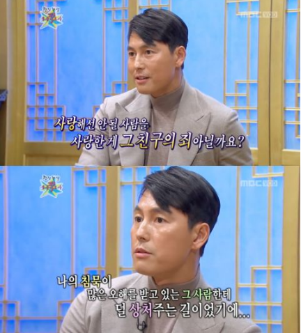 郑雨盛:我不是不结婚,是没能结婚。 错过了时机。 郑雨盛是韩国演艺圈第一位主动公开恋情的演员,但屡屡不堪舆论压力分手,感慨道:演员和艺人太不幸了。 都是同样的人,为什么因为名气就不能有伴侣呢?