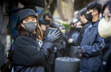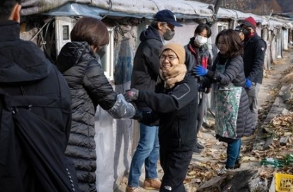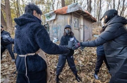 12月2日,韩国志愿组织同行者和国际救援机构韩国JTS(Join Together Society)从下午1点至下午3点为首尔江南区九龙村居民分送蜂窝煤,同行者当天共送出了4000块煤炭,每户家庭200块、共20户家庭。