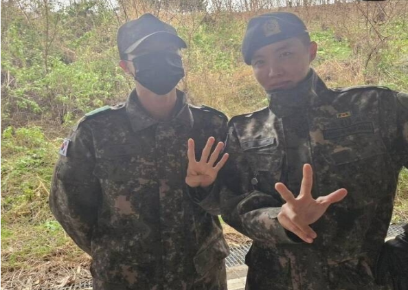 韩网讯/ 韩国男团防弹少年团(BTS)成员RM和V于11日以陆军现役身份入伍服兵役。