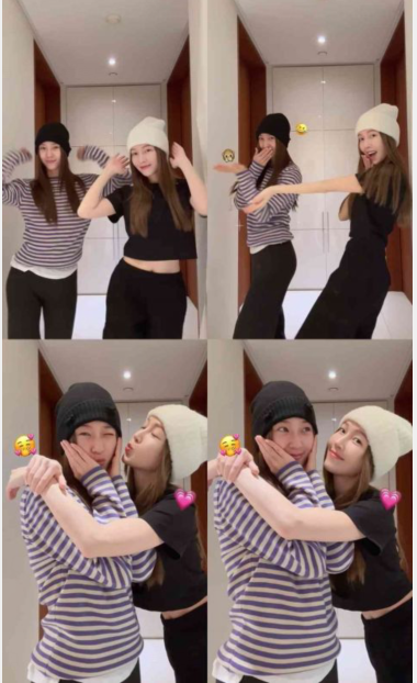 影片中,Jessica和Krystal两姐妹穿著舒适的衣服,带著轻松愉悦的心情挑战。两人笑容灿烂,动作也非常可爱,挑战结束时还秀了一下恩爱,又亲又抱展现了两人的好感情。