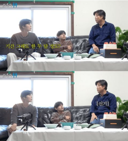 之后朴叙俊还提到现在住的房子装修4个月左右,本来是安排在海外拍摄时进行的,但是拍摄提前结束了。他说:因为泰亨家离我家就5分钟的距离,所以想说要麻烦一下...泰亨家刚好有空的房间,那个好像是为我准备的,托他的福,我节省了住宿费,大概住了两个月左右。朴叙俊也提到会和V的父母一起吃饭,V说:我的父母和叙俊哥的父母关系很好,是我们介绍的。