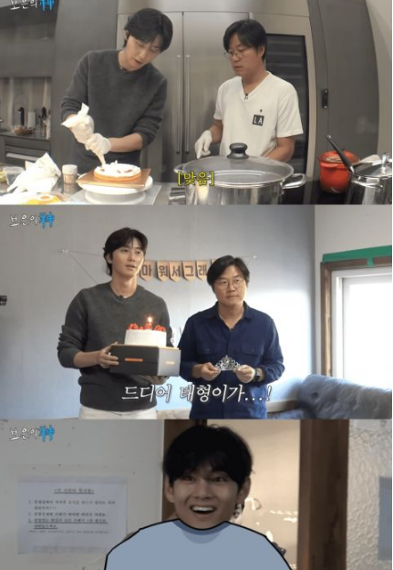 韩网讯/ YouTube频道十五夜近日公开的影片《报恩之神》中,罗PD和朴叙俊提前给将入伍的BTS防弹少年团V(金泰亨)过生日