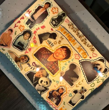 生日蛋糕上除了印有胜利和熊猫的照片以及祝福文字,当然少不了插上几根蜡烛,其中一根蜡烛还被Kong Karoon Sosothikul单独拍摄特写,摆放位置可谓十分独特。