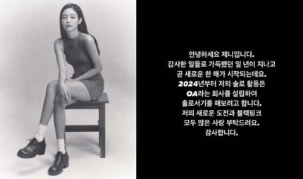 韩网讯/ 24日,据《中央日报》报道,珍妮在自己的Instagram上表示:"从2024年开始,我的个人活动将成立OA(ODD ATELIER)公司,试图独立。"珍妮补充说"请多多喜爱我的新挑战和BLACKPINK",还公开了《ODE ATLIER》的官方SNS账号。