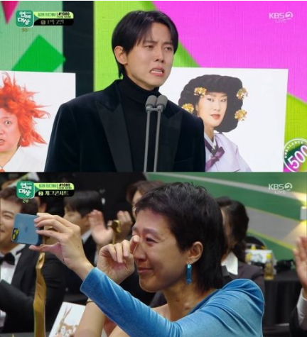 朱宇宰第一句话就介绍自己是《洪金铜钱》永远的老四,接著就开始哽咽,干脆要求导播赶快倒数秒数。去年第一次以《洪金铜钱》 参加典礼,今年当了MC,我以为这就是奖……试著阻止自己大哭的朱宇宰,边擦眼泪边说一定会被取笑,还搞笑说著应该要提从小波折的故事但自己没有那样的事。
