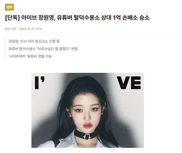 首尔中央地方法院在上个月21日,在张元英和Starship以朴某(脱粉收容所)为对象的1亿韩元损害赔偿诉讼中判决原告(张元英和Starship)部分胜诉。法院对1亿韩元赔偿金要求:“到全部还清为止,每年支付12%的各比率结算的钱。”朴某不仅要承担利息,还要承担诉讼中花费在法院的费用。