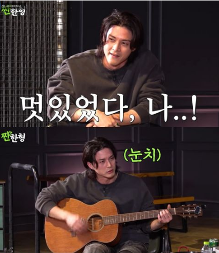 光是要用双手的力量撑起身体离开地面,并维持水平,金智勋坦言这个动作就让他练习了一年才能持续撑起3秒钟,现场的申东烨尝试后也体验到难度相当高。接下来主持人看到他在网路上公开的练唱影片,还请他现场表演,这时金智勋又离席说要到车上拿吉他!除了弹奏外他还现场大秀歌喉,虽然不是天生就很会唱歌,金智勋也希望透过课程跟自己的努力,展现自己热爱唱歌的一面,自己长期挑战歌唱领域已经22年,他也希望今年能有些成果,与大家共勉之。