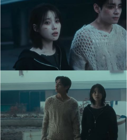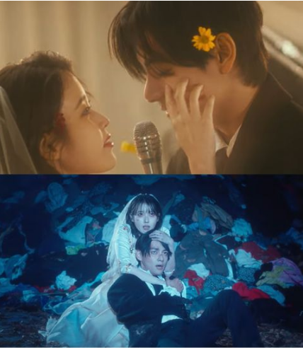 那似乎是一家废弃的婚纱店,店内发现了一部小摄影机,透过摄影机所看出去的世界却是如此美好,IU的脸上再也没有伤痕,V感到神奇而让IU也试试看,镜头下的V原本失去视力的独眼也变得正常,脸上无伤痕更显帅气,让IU忍不住伸手触摸。