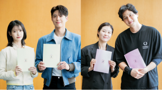 《您辛苦了》确定在 Netflix 上线,今日(30日)公开四位主演 IU(李知恩)、朴宝剑、文素利、朴海俊的剧本阅读照。
