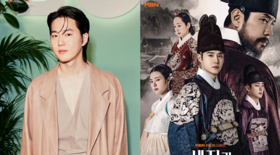 SUHO饰演的世子「李健」穿著蓝色龙袍,展现了王族的威严,眼神中透著优雅与坚定。洪艺智(饰崔明允)站在「李健」的左侧。 她穿著明亮而优雅的服装,脸上带著谨慎的表情。 明允是被选为世子嫔妃的人物。