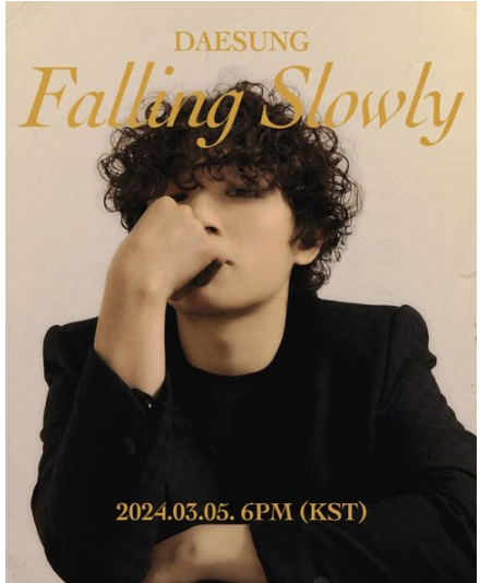 今,大声再公开一张预告照,终於用的是自己照片,顶著全新发型,小鬈发相当引人注目,且公布〈Falling Slowly〉就在3月5日韩国时间下午6时(港台时间5时)公开。无论是大声粉丝,还是金宣虎、文佳煐粉丝,可要记好时间了。