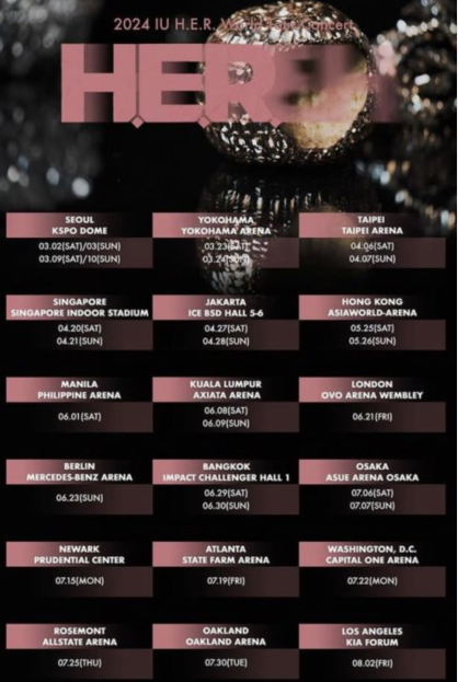 另一方面,IU 将以首尔爲起点展开大规模世界巡演。陆续到日本横滨、台北、新加坡、雅加达、香港、马尼拉、伦敦、柏林美国洛杉矶等18个城市开唱,预计会持续掀起热潮。