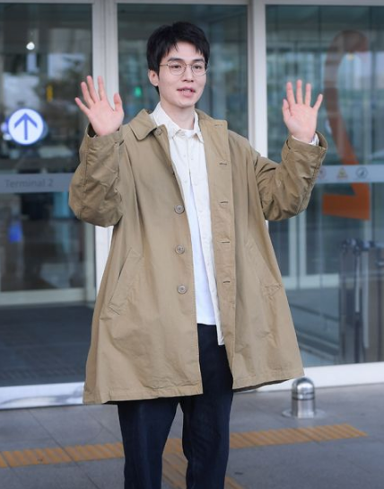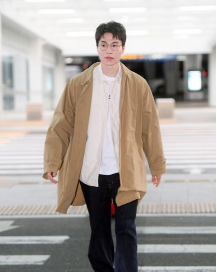 李栋旭一大早就现身机场,戴著文雅的细框眼镜、米色大衣内搭素色T恤和牛仔宽裤,呈现经典有型的早春男友LOOK。