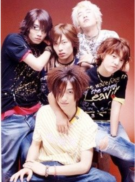 ▼出道前练习生时期的东海,前排黄条纹为利特