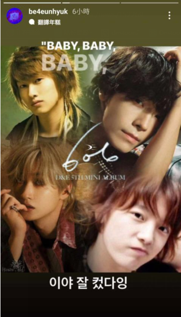 银赫在个人IG还发布一张合成图,把此次两人回归的造型,和2005年自己出道时的金发造型、东海出道前厚重刘海的造型对照,喊著咿呀,好好长大了。照片让粉丝看了也感慨,两个人面貌根本不像过了要19年的样子,但也多了更多稳重感。另外也有粉丝笑说,银赫背景音乐放了Justin Bieber〈Baby〉是不是也是赫海CP在放闪。