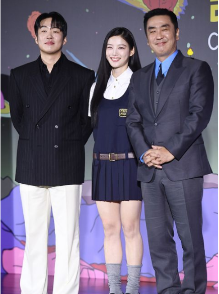 《炸鸡奇遇记》发布会:金裕贞夹在安宰弘&柳承龙中间,散发出如同洋娃娃般的可爱灿烂笑容~