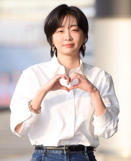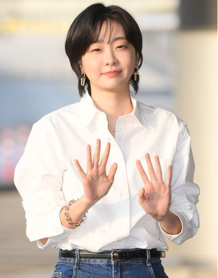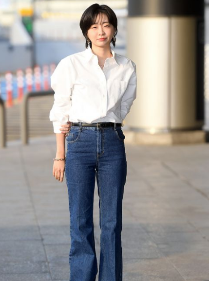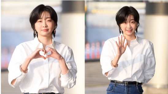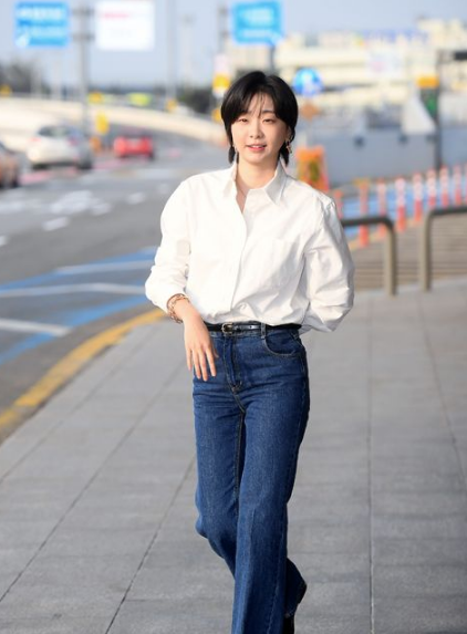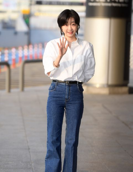 当天,金多美以短发造型现身,穿著复古风的牛仔裤和干净利落的白色衬衫,展现清爽的魅力。