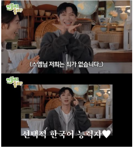 TEN一席话笑翻东海和银赫了,TEN自己也觉得相当好笑,但连忙否认,说自己韩语还没有很好,制作单位替他打上这行字:选择性韩语能力者,相当爆笑。D&E《要来这边吗?》目前两集都有SM哏,也成为话题。