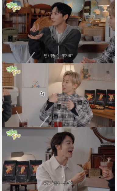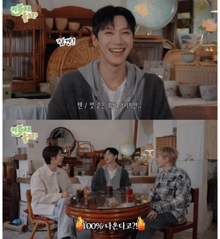 从小就和哥哥们在同公司……喔,现在不是同个公司。TEN讲到公司就改口,东海和银赫七嘴八舌问他干嘛突然撇清关系,东海还问:你以后就不出来了吗?结果TEN回答:当然会!100%、100%。东海:100%会出来?银赫:100%会从公司出来?