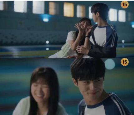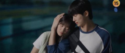 任率(金惠奫 饰)和善宰(边佑锡 饰)并排坐在泳池边,微醺的任率开启土味情话模式:你突然情绪低沉,让我感觉有道墙... 完美的墙?