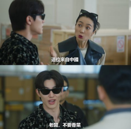 EP.11 洪家人为打探消息全家出动,假装是需要大型仓库的批发商们,洪秀哲被迫假装是中国来的商人,所以情急之下冒出的第一句话是:老板,不要香菜。这句不看字幕也能听懂他的中文,非常标准,