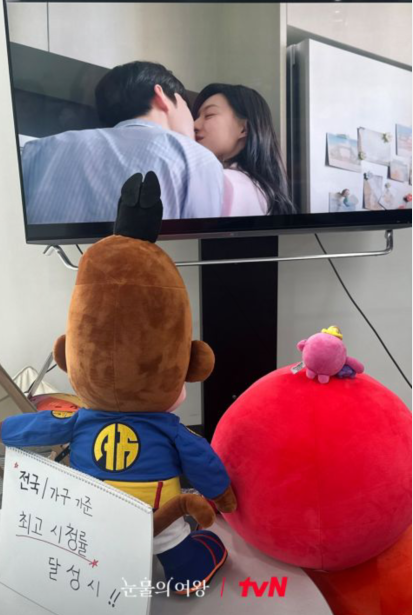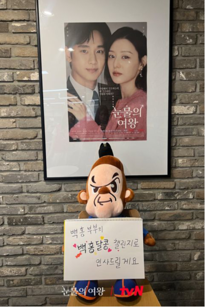 先前导演在发布会表示如果《泪之女王》收视率超过《爱的迫降》大结局就和五位演员一起拍行大礼的影片,遭到很多观众吐槽。 tvN今日上午宣布:目前首都圈收视率已达到tvN历代最高,一旦全国收视率也突破高点,就请红白夫妇履行新的公约甜蜜challenge!至於之前那个公约,就由剧中吉祥物满猴儿代为执行。