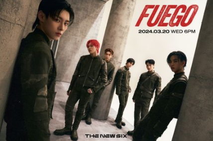 THE NEW SIX(原名TNX,禹庆准、崔态训、张贤洙、千晙赩、殷辉、吴省峻)是由P NATION选秀节目《LOUD》脱颖而出的六名选手组成,2022年5月出道,至今发行的四首主打歌MV均有千万点阅,今年3月发行的数位单曲《FUEGO》也包含在内。