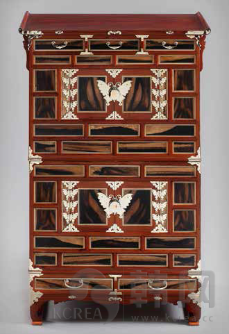 【韩网报道】统营市土生土长的金极天先生是家中第四代豆锡工艺的传人。金极天 先生最初开始接触豆锡工艺是在1970 年,其高一学年。当时金极天 先生在他父亲的工匠坊里打杂,帮忙在家具上贴装饰品,或者是将 装饰品打光等。金极天先生正式开始学习装饰设计师在其军队退伍之 后。在他服兵役期间,因父亲在经营螺钿工坊的时候,替人担保不慎, 工厂和全部家业都毁于一旦,一夜之间家道中落。也因此金极天先生 不得不开始帮爸爸打理家业,结果通过两父子的努力使家业得到了一 定的恢复。现今,他在统营市统营非物质文化遗产教育馆进行创作。 在金极天先生的工坊里,每堵墙上都有各种各样的玉石装饰,每间 房的地板上都随处可见到锤子,尺子,钉子等制作豆锡工艺的工具。 大约有两至三千的蝴蝶,太极,蝙蝠等各种装饰品,其中,蝴蝶锁是 豆锡工艺代代相传的代表名作。 文/ 李志宪 照片/ 徐贤强( 文化遗产专业摄影师)