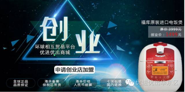 为响应国家提出的“全民创业 万众创新”,优进优出微信商城推出了“创业店”的加盟模式,真正满足普通老百姓投资小、利润高、易操作、前景广的创业需求。只要一次性投资一千元就可拥有属于自己的移动端商城,并得到除 后 等一线品牌外,大部分4-6折的产品成本价。不用自己备货,发货。活动策划到营销软文都有专业团队负责,后期还会建设创业店主培训课,帮助所有店主解决实际操作中遇到的问题,并教授创业店主产品知识、发掘用户、推广会员等方法。
