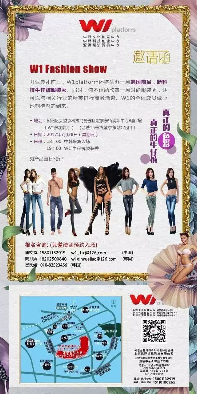 本次时装秀包含W1弹力塑身牛仔裤,运动鞋,化妆品,各种饰品,女士和男士的运动健身内衣等等将由22名模特来完美展示。不仅如此,我们还安排了精彩的K-Pop舞蹈,所以这次W1的时装秀将紧跟时尚潮流,满足各位的多种口味。
