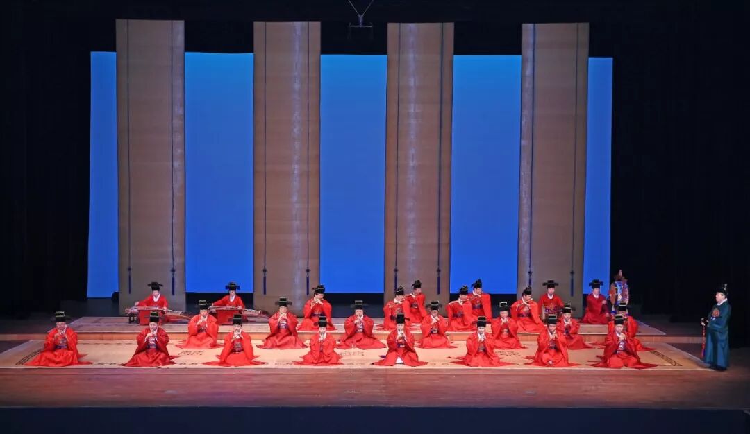 被誉为雅乐之最的管乐合奏曲 《寿齐天》共有四章,23选段。主旋律由笛子、大笒、奚琴、牙筝庄重编织在一起,乐曲的笛子主旋律在一选段即将结束时,与大笒旋律运用连音技法华丽相接。随着演奏者之间的默契配合,音乐缓慢从容地流淌,向人们展现韩国传统音乐的固有特性。