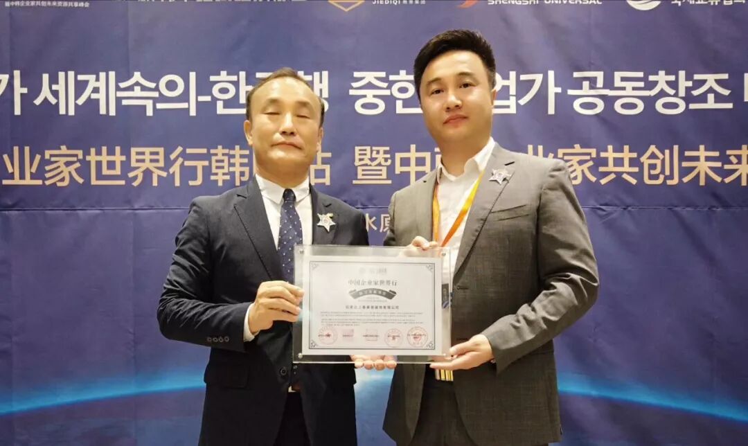 韩国政府授予“上善美居”中韩友好交流大使及中国企业世界行联合发起单位荣誉称号。