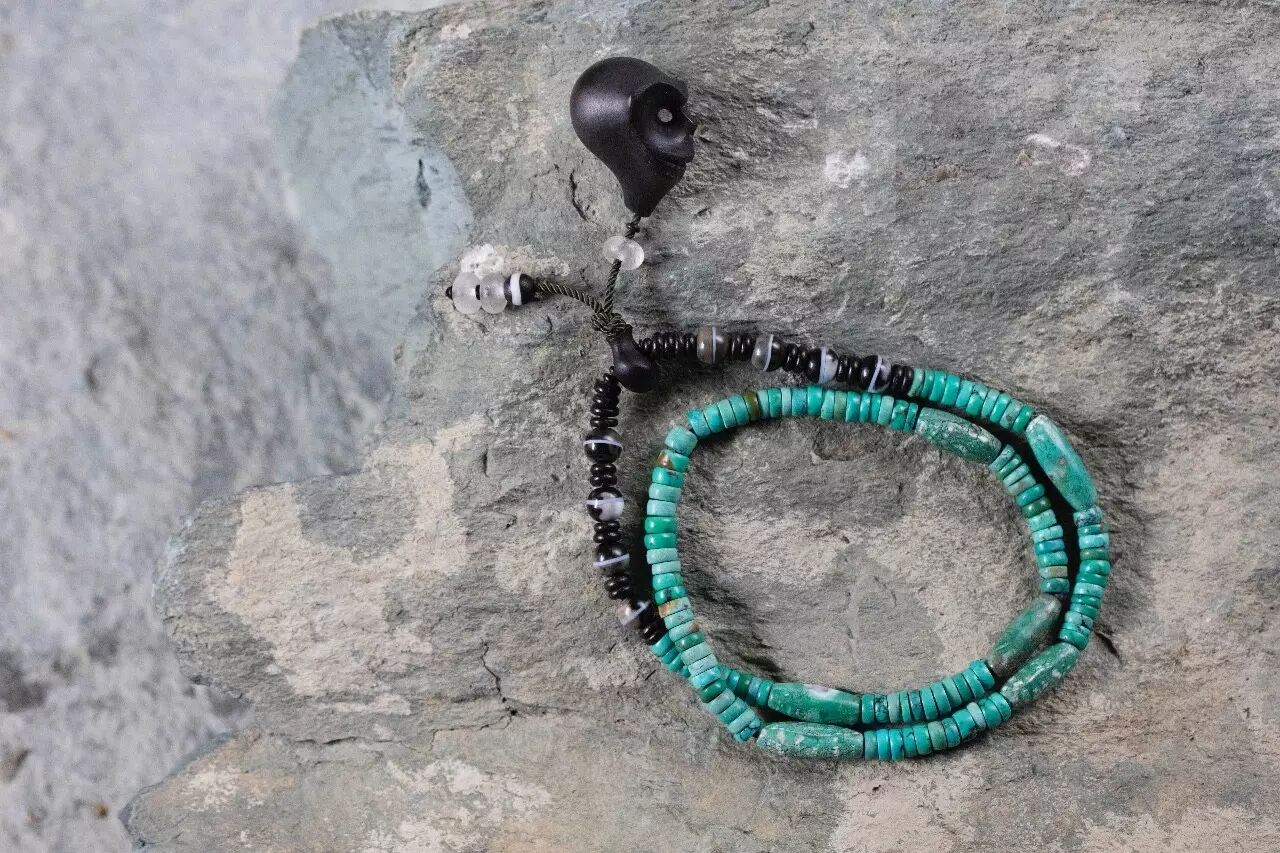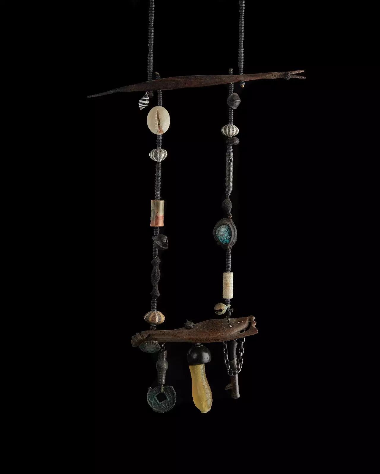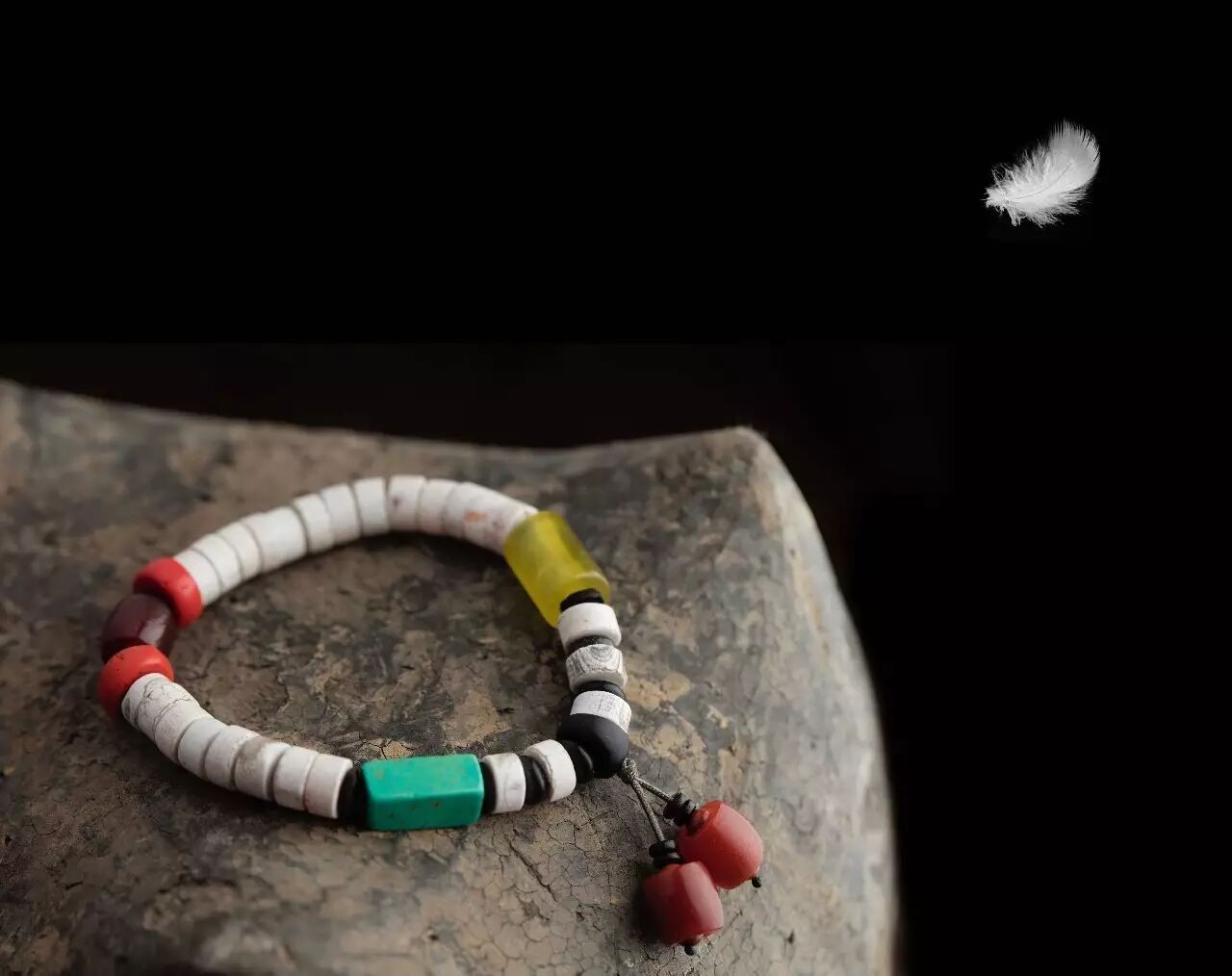 古珠饰品在远古社会中的用途主要是巫师用于通天地时祭祀用的法器,巫作为沟通人和神之间的桥梁,拥有至高无上的地位和权利,也只有萨满巫师或国王才能够佩戴这些法器。
