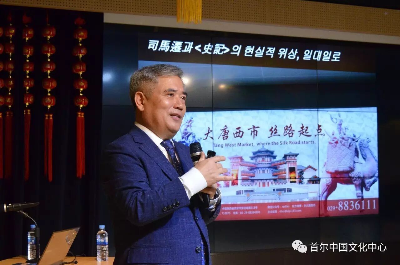 此次讲座的主讲人金瑛洙教授是韩国司马迁学会理事长、《史记》研究专家。他本人从上世纪八十年代开始潜心研究《史记》,30多年来到访司马迁故乡百余次,为中韩文化交流和《史记》在世界范围的传播做出了积极贡献,被司马迁故乡陕西省韩城市徐村授予“荣誉村民”称号。
